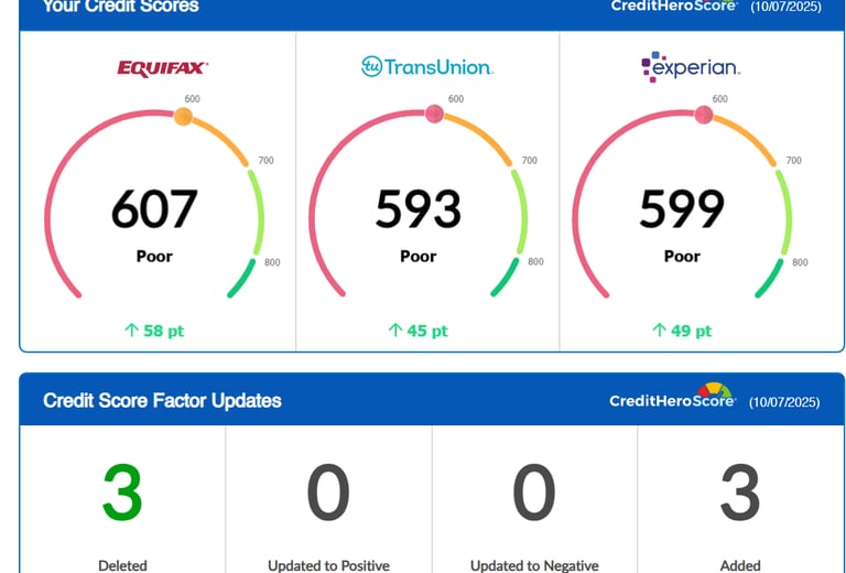 "My credit has steadily gone up over 60 days — about a 90-point increase so far! Communication has been great, and unlike the last company that charged us $1,000 plus monthly fees, they only charged a one-time $250. Total game-changer."